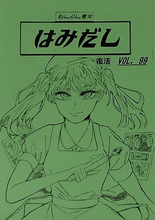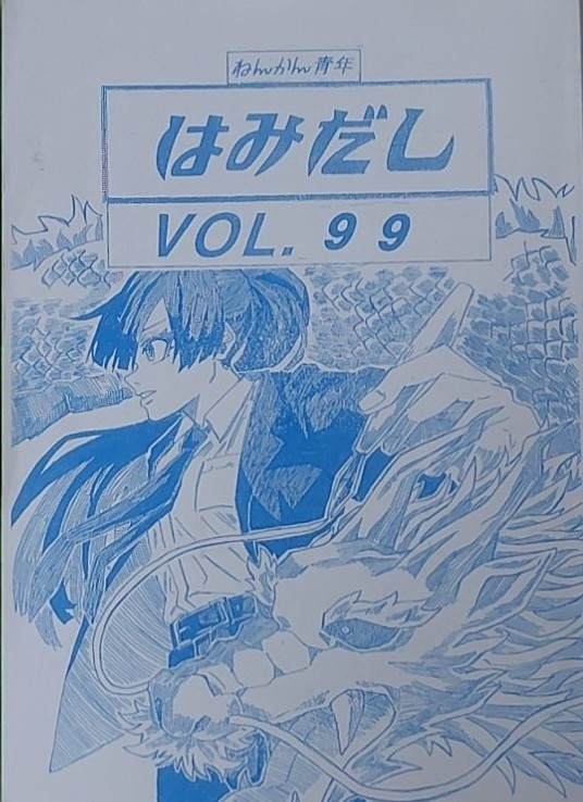 同人誌の表紙は基本的に掲載している漫画のコマを無作為に抜粋してコラージュのように配置していました。しかし、部活動の顧問の先生から「今年も表紙の制作を頼んでもいい?」と勧められ、私自身も最初で最後の部活動での同人誌制作だったため快く引き受けました。前年はツインテールの可愛らしい女の子だったためこの年はかっこよさに全振りした表紙にしたいと考えたため龍(辰年のため)とスーツ姿の女の子を描きました。