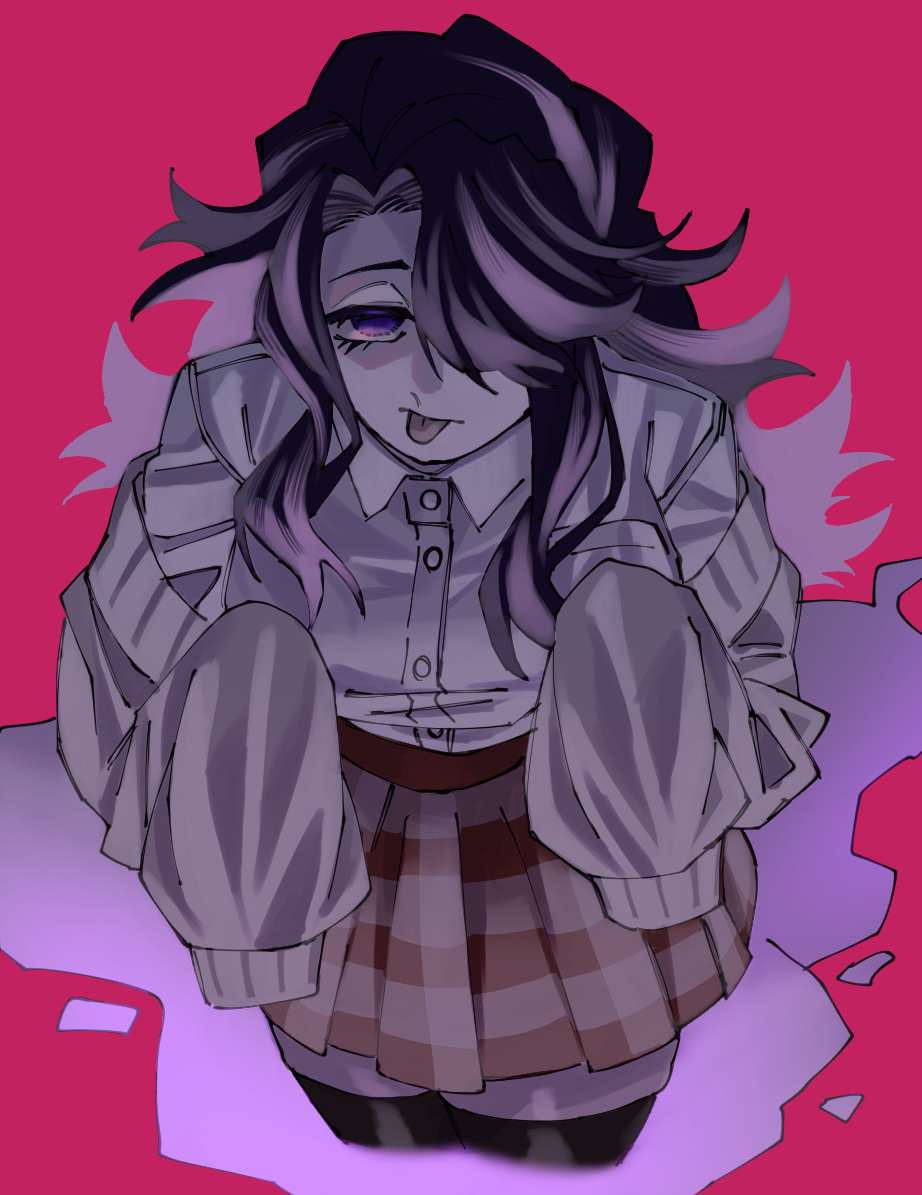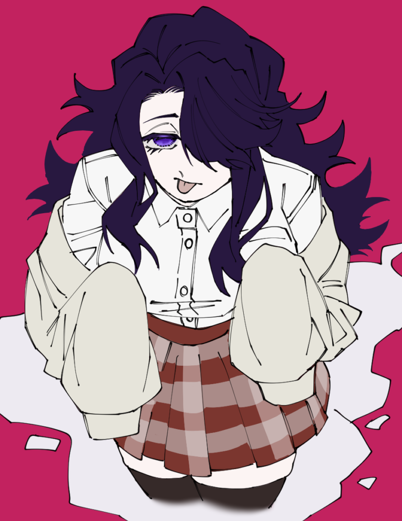また、セーターにニット風02というテクスチャを貼り、下半身部分の線画の色を少し紫がかった色にしました。ふわふわとした実体のない感じを表現したかったので普段はあまり行わない色トレスを行いました。