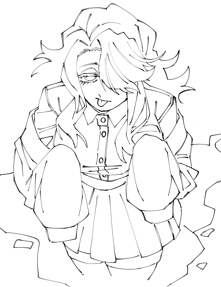 下描きの段階では少しつり目気味に描いていましたが元のキャラデザは垂れ目のため線画の段階で修正しました。
